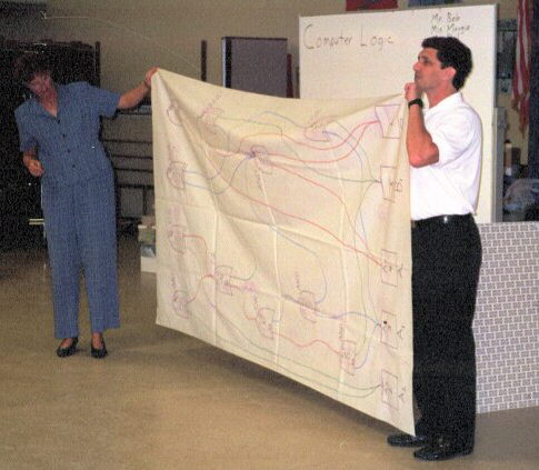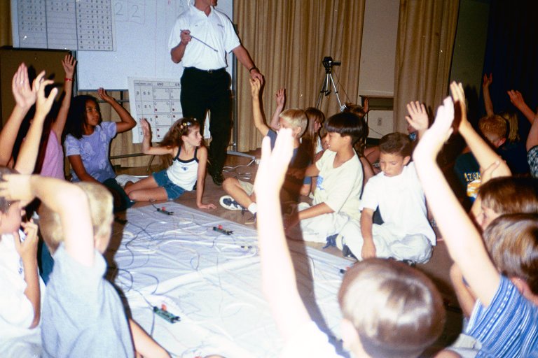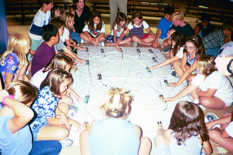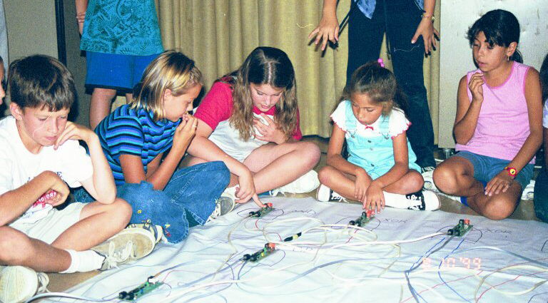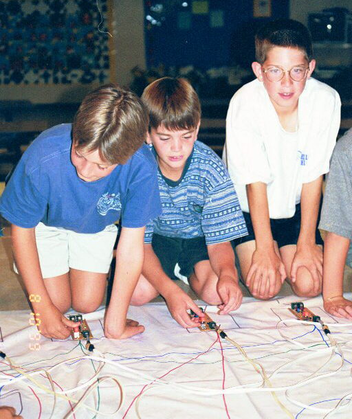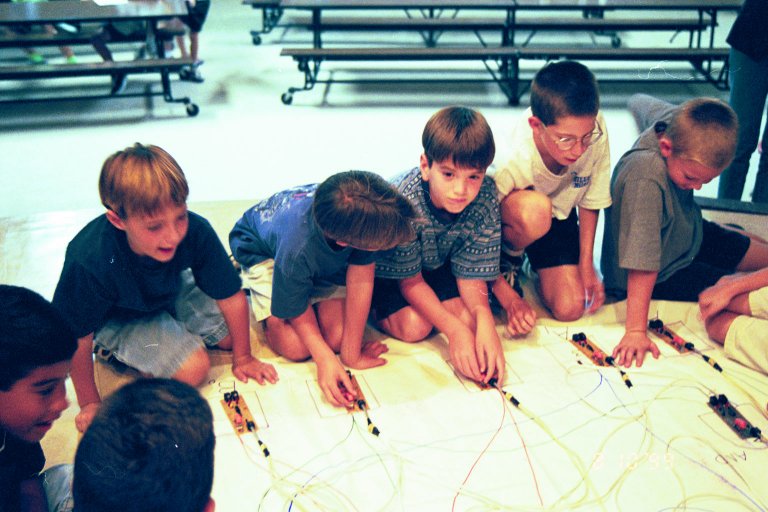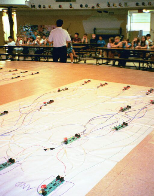 to guide the students in connecting their gates. Two teams run two