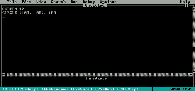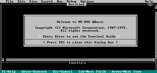 Start by opening a QBASIC window: