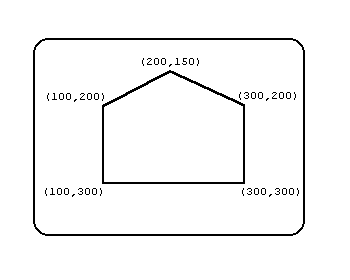 | Put on the Roof. | LINE (100,200)-(200,150) LINE (300,200)-(200,150) |